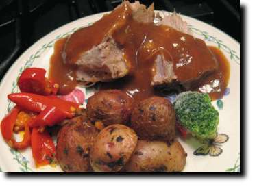 | 2. | Combine (D), pour over the roast, and cook on low in crockpot for 10 hours. |